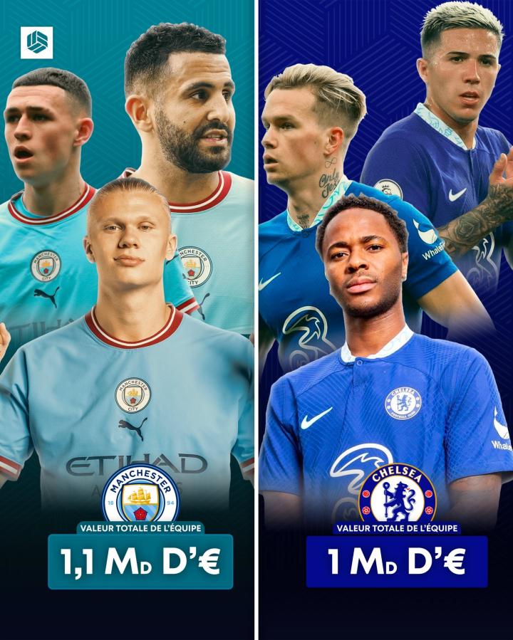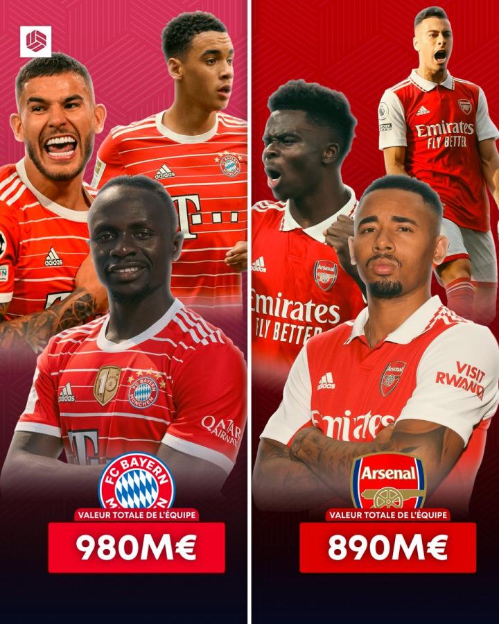 今日图评丨曼城、切尔西、拜仁慕尼黑和阿森纳分别是世界上4支最昂贵的球队。 ( @Transfermarkt )
