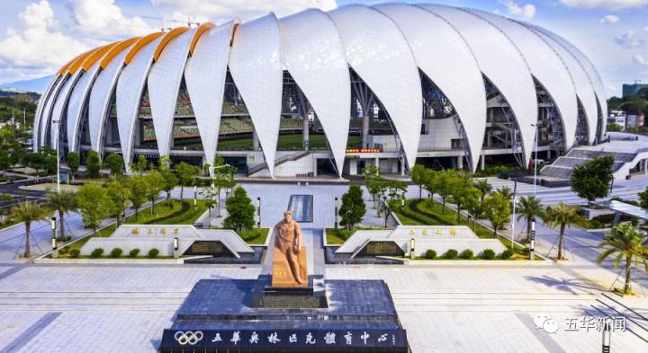 五华奥体中心是一个综合性的体育中心,2019年启用。体育中心里的体育场名叫“惠堂体育场”,能容纳27000人。所谓“惠堂”,指的是有“球王”称号的李惠堂,他的祖籍就在梅州五华县,奥体中心外有他的雕像。