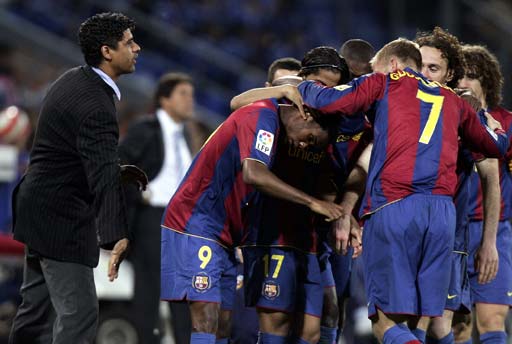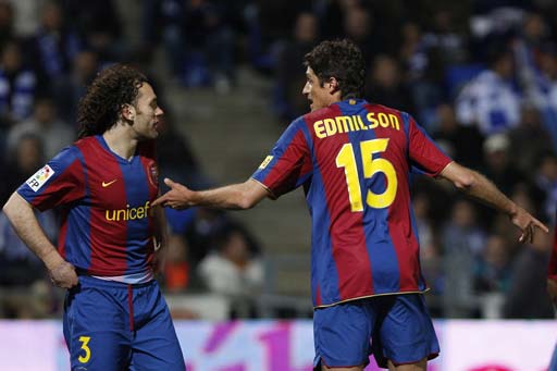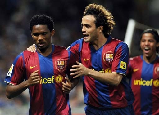 7、2008年4月12日,巴萨在西甲联赛第32轮客场2-2战平维尔瓦。埃托奥在比赛中梅开二度。
