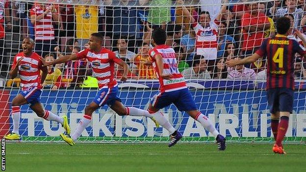 9、2014年4月12日,巴萨在西甲联赛第33轮客场0-1不敌格拉纳达。