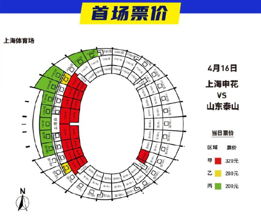 这是申花在新赛季的首个主场,也是在时隔3个赛季之后的首个主场比赛。根据票务公告,申花与泰山这场比赛的球票,分为甲、乙、丙三个区域,票价分别为:320元、280元、200元。