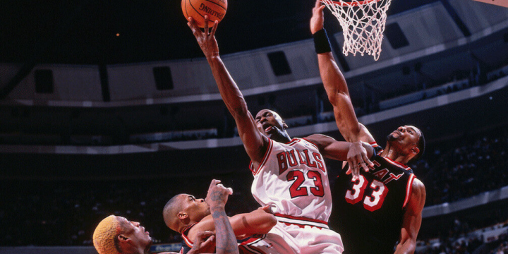 热火和公牛是一对老对手了。热火队史首次季后赛之旅对手就是公牛,热火队史首次东决之旅对手也是公牛。在前3次碰面中,热火3次皆败北,满打满算11场比赛仅赢了1场。于是也才有热火将23号球衣退役,以表示对从未为自己效力的乔丹的敬仰的佳话流出。