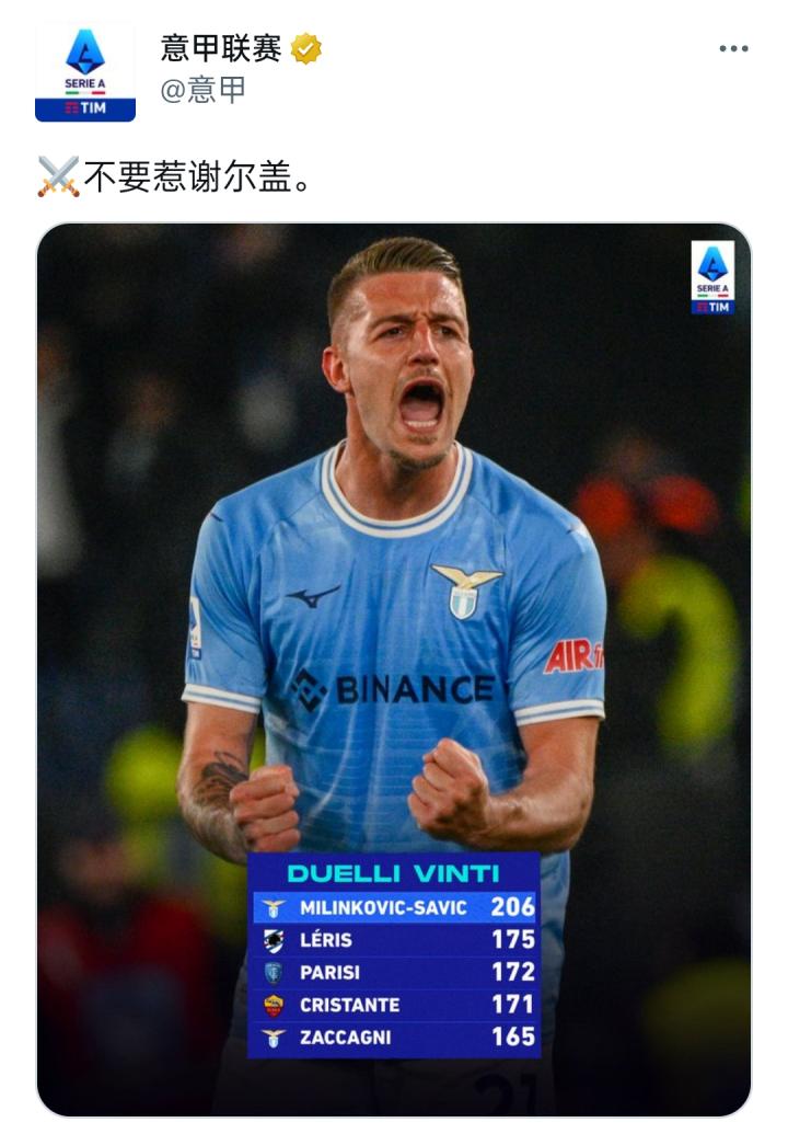意甲官媒:别惹谢尔盖 飞翔的蓝鹰 飞翔的蓝鹰2023-04-14 02:52意甲对决成功次数,拉齐奥中场谢尔盖·米林科维奇-萨维奇206次排名第一,超过第二名的莱里斯31次之多。另外拉齐奥边锋扎卡尼本赛季对抗成功次数也排在意甲第五。展开更多