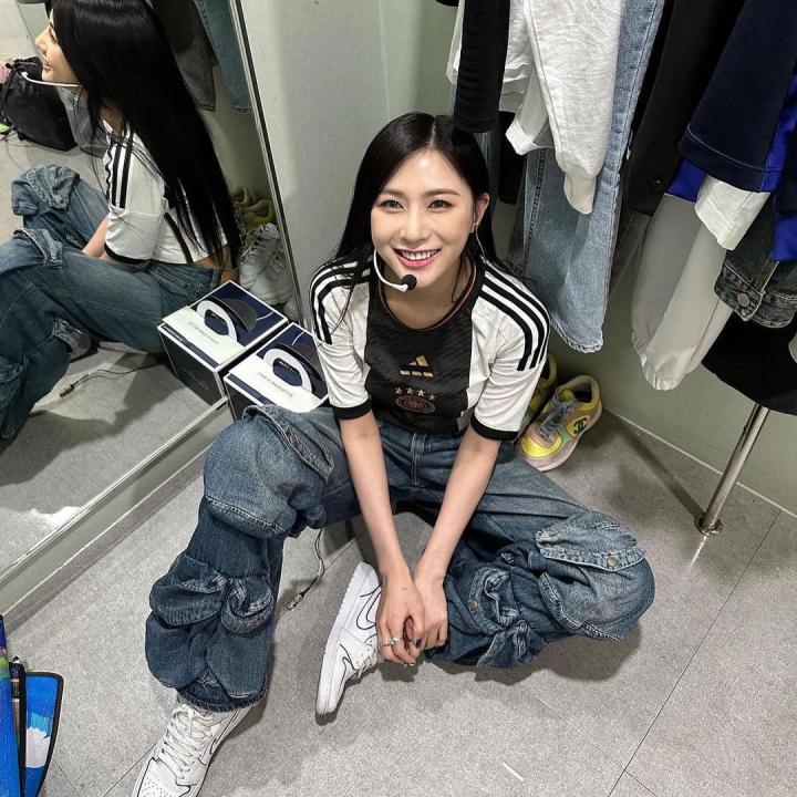 曼联球迷APINK吴夏荣,真的很爱穿球衣。曼联、大巴黎、德国队的球衣,都搭得很好看。