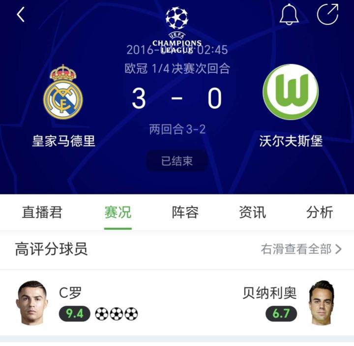 欧冠经典比赛回顾|欧冠之王C罗的逆风翻盘风采,帮...天天向上Football @懂球帝2023-04-15 12:33欧冠经典比赛回顾|欧冠之王C罗的逆风翻盘风采,帮助球队涅槃重生 2015/16欧冠1/4决赛首回合,皇马0-2沃尔夫斯堡,次回合C罗上演帽子戏法帮助皇马逆风翻盘。 2018/19欧冠1/8决赛第一回合,尤文0-2马竞,次回合C罗帽子戏法帮助尤文逆风翻盘。展开更多