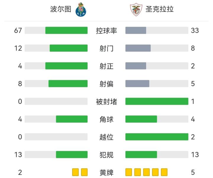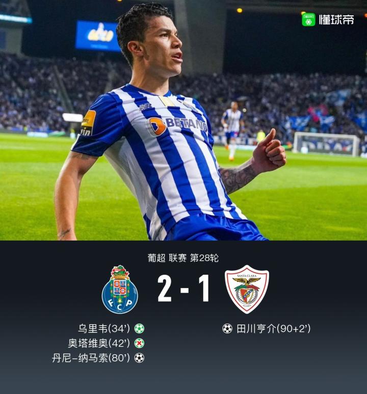 波尔图2-1圣克拉拉距榜首4分,乌里韦点射,田川亨介破门