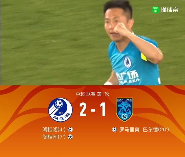 第4分钟,中超新赛季首球来了!阎相闯破门,大连人1-0南通支云!