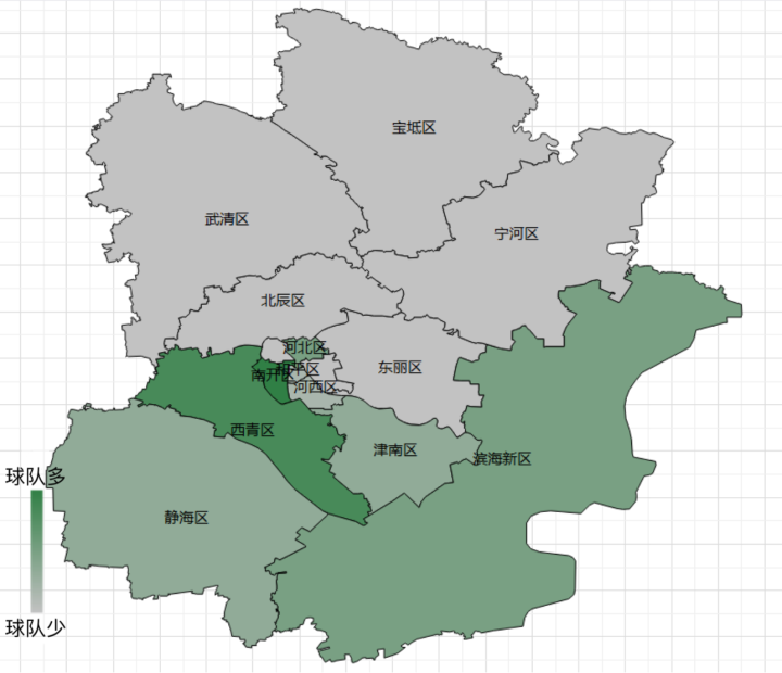 天津足球的另一个问题,就是地域分布不均。在统计完所有津超/津甲球队后,你会惊讶地发现,所有的球队都集中在天津南部,而天津北部根本就没有球队。这个一半森林、一半荒漠的景象,正是天津足球地域发展不均衡的最好证明。