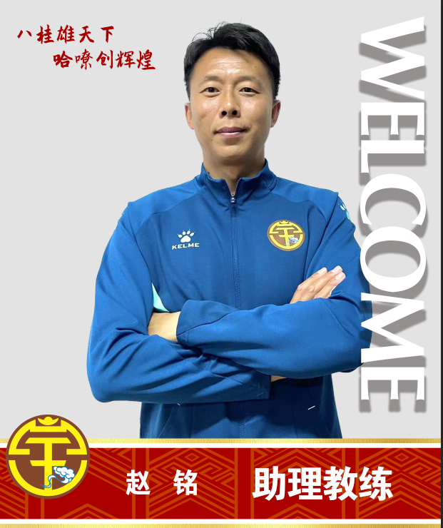 赵铭,1987年出生于吉林延吉,球员时代曾效力于延边、长沙金德、广州富力等球队。赵铭身材高大防守稳健,曾多次入选国青队和国奥队,2005年荷兰世青赛,以主力中卫身份帮助球队打入16强。转型为教练后积极学习,上赛季以助理教练身份帮助球队成功保级。
