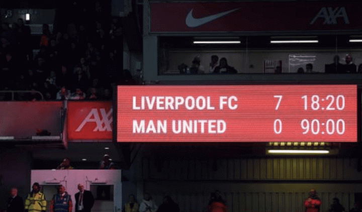 英超第26轮,利物浦主场7-0血洗曼联;