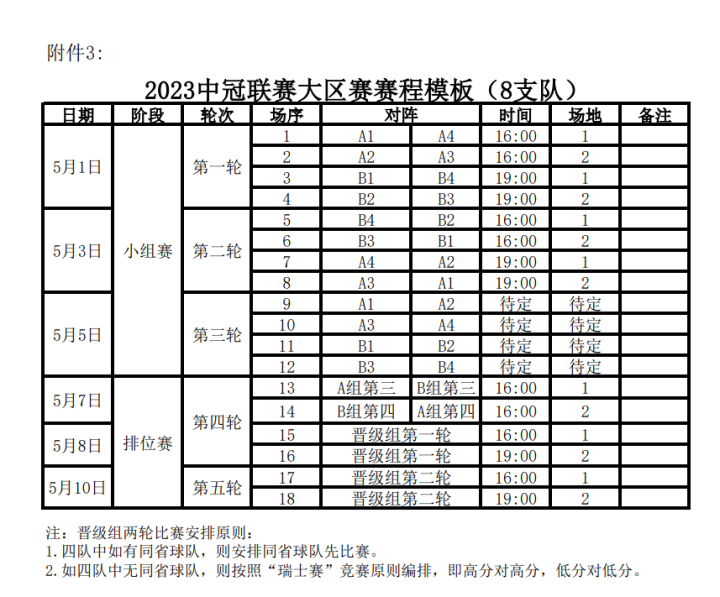 在第四轮,A组第三将迎战B组第三,A组第四对阵B组第四,而晋级组中如果有同省球队则安排同省先打,无同省则按照“高分对高分,低分对低分”的情况进行编排。一方面能够拉高关注度,另一方面也是对于去年中冠比赛中出现的种种情况进行修正与完善。