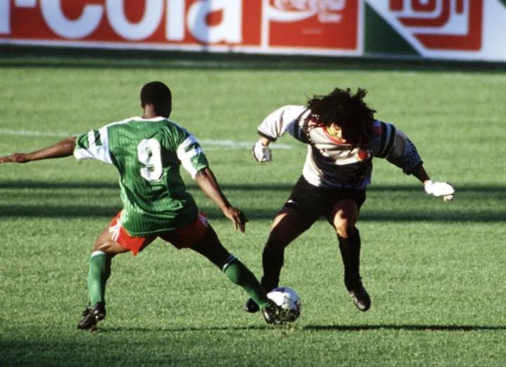 1990年意大利世界杯1/8决赛,哥伦比亚队迎战喀麦隆队。伊基塔没有将非洲雄狮放在眼里,他一如既往地跑出守门员区域帮助进攻。在球队表面上得势之后,他更加的肆无忌惮!禁区前接队友回传球时没有选择大脚解围,而是在38岁的“非洲大叔”罗杰·米拉面前玩起了带球过人,结果一不小心球被抢走……米拉推空门得手,哥伦比亚最终1比2输掉了比赛。