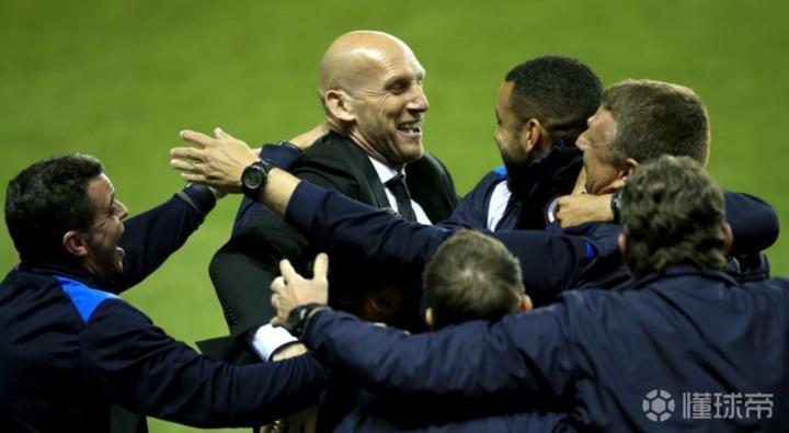 球队主帅斯塔姆在庆祝今天凌晨的胜利