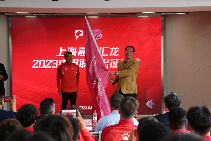 4月19日下午,上海嘉定汇龙足球俱乐部2023赛季出征仪式在上海市嘉定体育训练中心隆重举行。