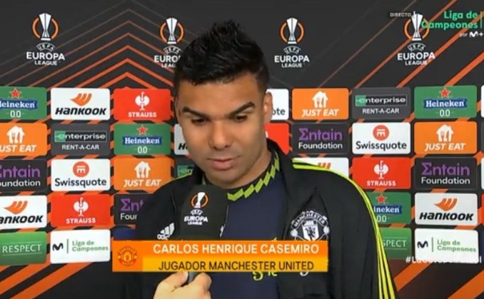 欧联杯四分之一决赛次回合,曼联0-3完败塞维利亚,止步欧联杯,赛后,卡塞米罗接受了媒体的采访。