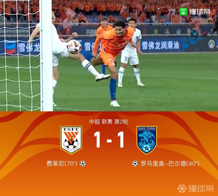 山东1-1南通,巴尔德连场破门,费南多助攻费莱尼头槌扳平