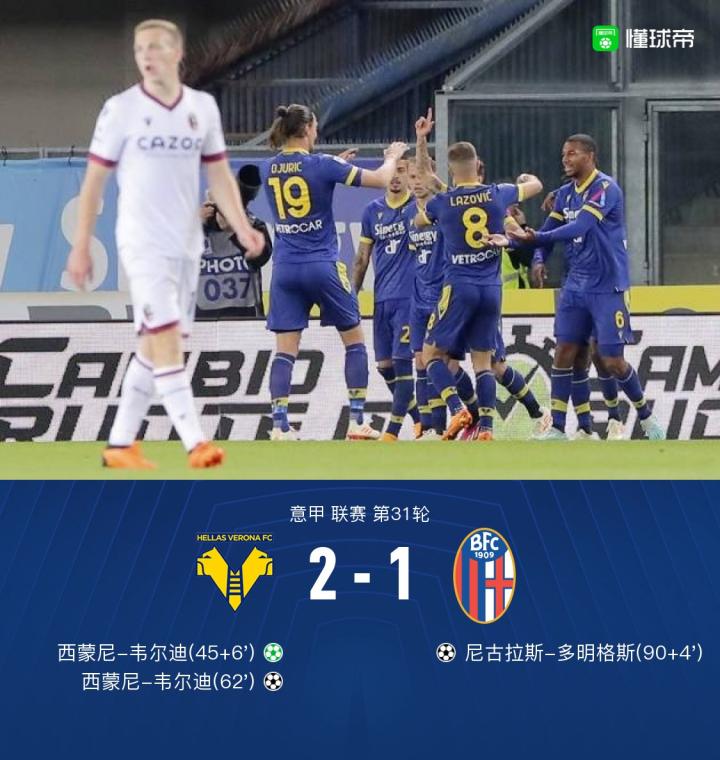 维罗纳2-1博洛尼亚,韦尔迪双响+点射,多明格斯破门
