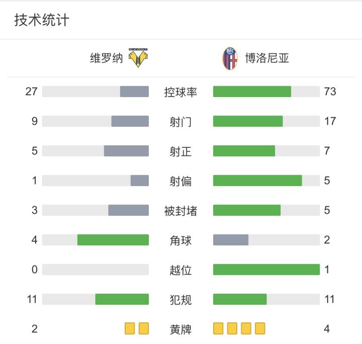 上半场补时第6分钟,主裁判通过观看VAR认定博洛尼亚门将击打盖奇犯规判罚点球,西蒙尼-韦尔迪主罚命中,维罗纳1-0。