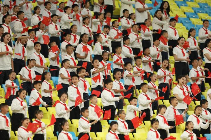 #ForBetterCity# #成都蓉城2-1沧州雄狮# 在足球场的南看台,来自成都市青少年宫红领巾银杏合唱团、四川天府新区第三中学附属小学、成都市双流区实验小学外国语学校、成都市茶店子小学校、四川天府新区教育科学研究院附属小学、成都市兴盛小学校、成都市人民北路小学华侨城校区、成都市友谊小学校、成都市金沙小学,共计9 所学校(单位)组成的520位成都蓉城红领巾加油站成员,也在球场上引吭高歌。这是属于这些小朋友们展示自我的舞台,他们先后为大家献唱了《红领巾嘟嘟》、《童心向党 爱在中国》,向全场观众唱出美好成都旋律的同时,也展现出幸福成都的青春活力,以另一种形式的球场文化,擦亮这座城市的幸福底色。 小朋友们亲身体验到成都蓉城队新赛季的首个主场比赛,也体现出成都足球的传承。共享荣耀,铸就未来,小朋友们通过献唱,完全融入到现场的足球氛围,感受到竞技体育的魅力,这也是促进成都市青少年全面发展的体现,以职业足球的舞台,推动成都市青少年文化、体育文化建设。
