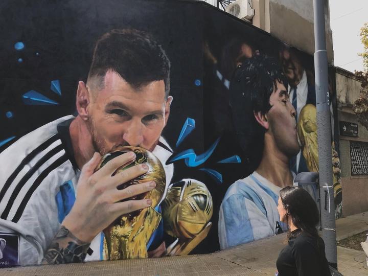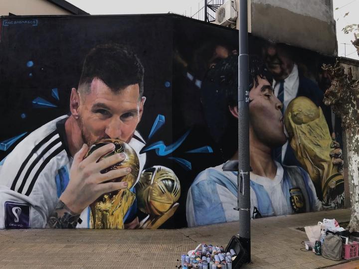 阿根廷首都别墅区的一幅壁画:梅西和马拉多纳亲吻大力神杯ETChalmers @懂球帝2023-04-22 09:53阿根廷首都布宜诺斯艾利斯出现了一幅壁画,梅西和马拉多纳亲吻大力神杯。阿根廷艺术家马克西米利亚诺-巴尼亚斯科在布宜诺斯艾利斯的一个别墅区附近创作了一幅壁画,是马拉多纳和梅西在夺得世界杯冠军后亲吻大力神杯的经典画面。展开更多