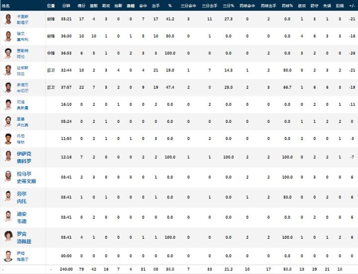 末节,骑士进攻继续低迷,尼克斯替补阵容则是进步拉大分差至20分以上, 随后尼克斯主力再度回归彻底将比赛带走。节末双方逐渐换下主将,罗斯也得到上场时间,全场结束,尼克斯99-79大胜骑士。
