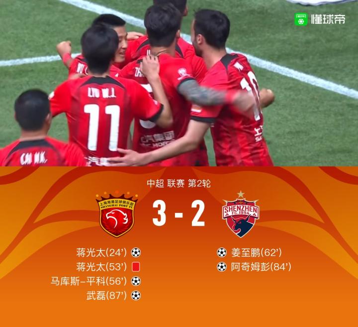 【十人海港3-2险胜深圳,武磊单刀贡献绝杀,蒋光太破门+染红】