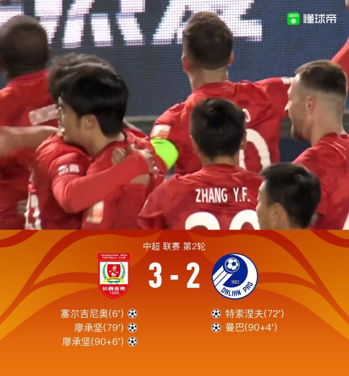 【超戏剧!亚泰3-2大连,曼巴94分钟扳平,廖承坚96分钟绝杀】