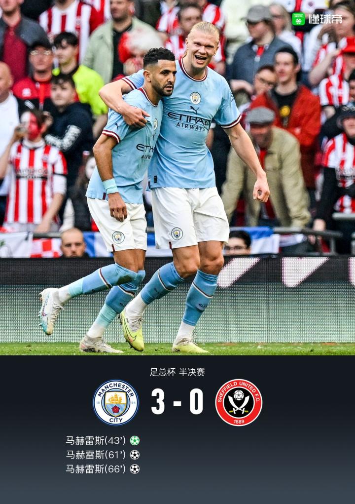 曼城3-0谢菲尔德联晋级足总杯决赛,马赫雷斯上演帽子戏法,球队决赛将战曼联、布莱顿之间的胜者