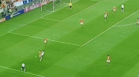 皮球疾速斜飞禁区,穿越门前密集人群,竟无一人能够碰到,落地继而弹起,影响了门将的判断,范德萨稍一愣神,双手扑空,邦当一声,来球,已击中右门柱内侧入网!