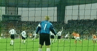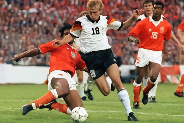 转眼到了1988年,欧洲杯半决赛,联邦德国队,在汉堡迎战荷兰队,主裁判各给了双方一个争议点球,马特乌斯和科曼分别踢进。正当大部分人都以为,加时赛将不可避免时,第八十九分钟,荷兰前锋范巴斯滕,一脚绝杀了德国队,橙衣军团得以进入决赛,并最终捧杯!