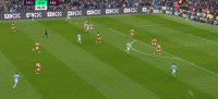 比赛一开始,曼城在进攻中的意图非常的明显,那就是重点打击霍尔丁所在的这一侧的防区。开局阶段,曼城就通过格拉利什这一侧进行左路传中,而传球的落点十分的讲究,基本上都在阿森纳的近门柱一侧,也就是霍尔丁右中卫的区域附近。