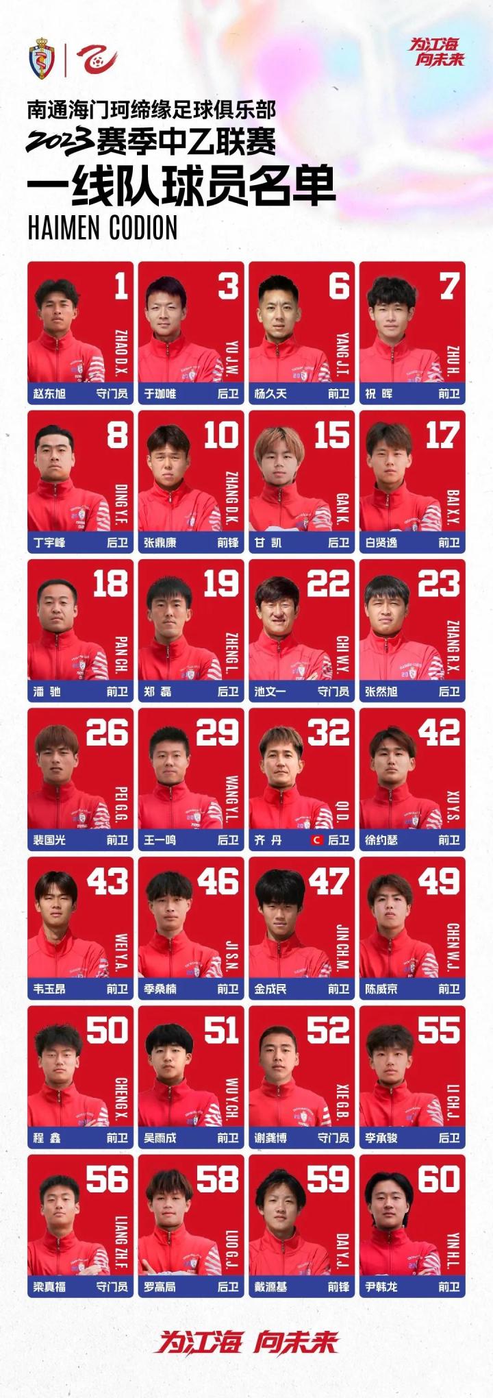 2023赛季再度起航,南通海门珂缔缘会在中乙舞台上继续展现通江达海的城市力量,以“海纳百川、强毅力行”的城市精神为力量源泉,打出海门足球的风采,捍卫城市荣耀。全体将士将以更加饱满的热情和斗志,以永不放弃、永不言败的拼搏精神,奋战到底,不辜负海门百万人民和广大球迷的热切期盼,为这片江海大地拼取更多荣誉。