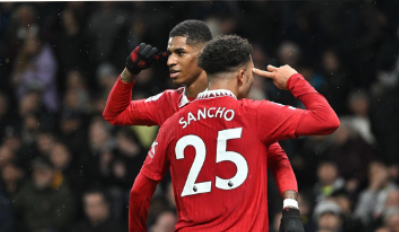 开局仅6分钟,拉什福德就通过中路的带球吸引了热刺的防守,随后轻巧的将球分给了左路的桑乔,桑乔在内切后观察到了热刺的三名防守球员并没有及时的上抢且没有把射门的角度封锁完毕,随后桑乔的射门穿过防守球员后直挂死角,曼联取得了梦幻开局。
