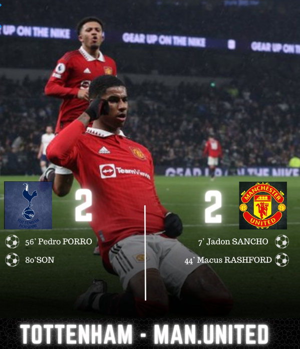 最终,在跌宕起伏的情节下,热刺和曼联的比赛以2-2的比分收场。