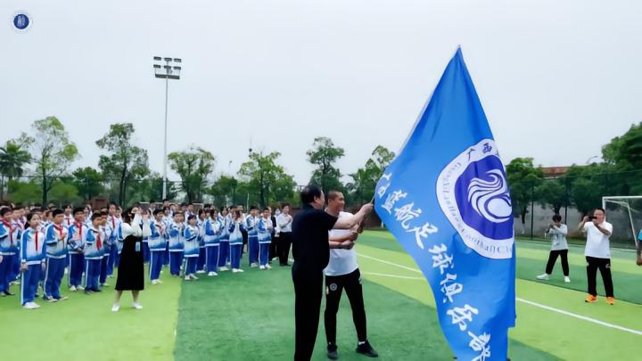 随后,谢强向广西蓝航足球俱乐部领队韦洪广授旗,在阵阵激动的掌声中,仪式落下帷幕。