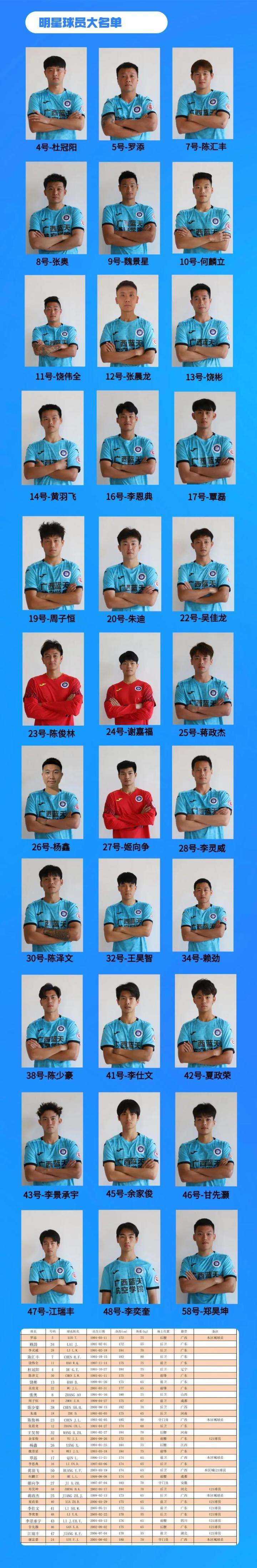 2023赛季,广西蓝航在保留罗添、王昊智、李灵威、张晨龙、周子恒等原班实力战将的基础上,引进了杨鑫、魏景星、李恩典等征战过亚冠、中超、中甲的优秀球员,还号召了陈俊林、覃磊、蒋政杰等广西本土球员回归,新赛季阵容稳扎稳打,实力雄厚!