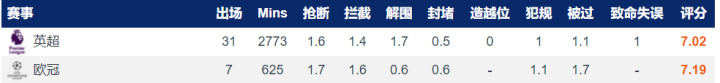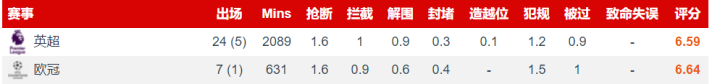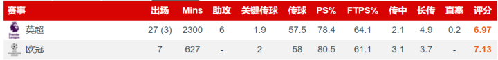 范戴克:范戴克近期的状态确实令人堪忧,在防守的站位上失位的情况比较多,不过在一些危险球的处理上解围做的还是比较及时的,如果他在后防上能贡献出更好的表现,利物浦的后防会更加稳健。