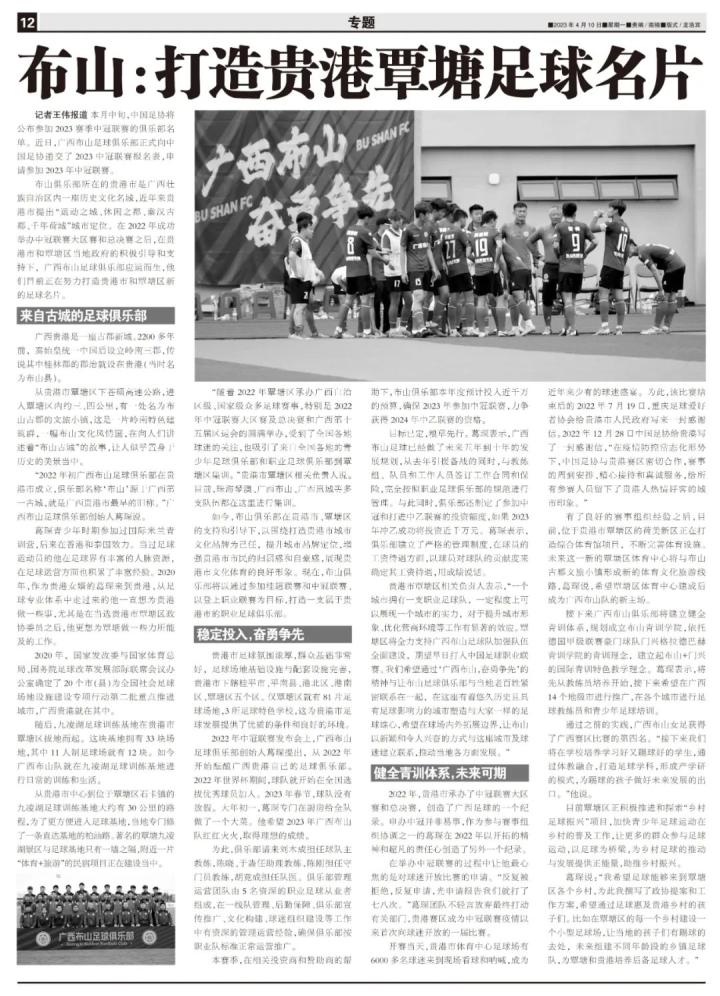 “2022年初广西布山足球俱乐部在贵港市成立,俱乐部名称‘布山’源于广西第一古城,就是广西贵港市最早的旧称。”广西布山足球俱乐部创始人葛琛说。