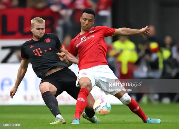 打到,打不到,德利赫特有没有来救,都不重要。因为只要在打击这个点,哪怕德利赫特确实来救了,也能创造出基米希被巴雷罗和李在城围着打的优势。果然,这次定位球机会出现在左侧,阿若克触发了自己“头球回点差但攻门很准”的buff。然后,美因茨见到了曙光。