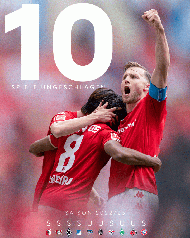 Maruyama三月1胜2平保持不败后,美因茨剩下了必须好好打的9场比赛:两个难缠的中游队,两个首回合翻车的保级队,还有拜仁、多特、莱比锡。美因茨此时六轮不败,克洛普、图赫尔和施密特能做到的最长不败也就是六轮,而斯文松在带美因茨奇迹保级的时候则是打出了一波9轮不败,总之,每向前走一步,对于美因茨的球员们都是激励和挑战。