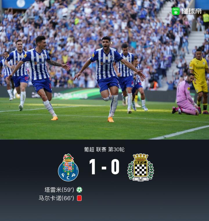 波尔图1-0博阿维斯塔迎6连胜,塔雷米点球致胜,马尔卡诺染红