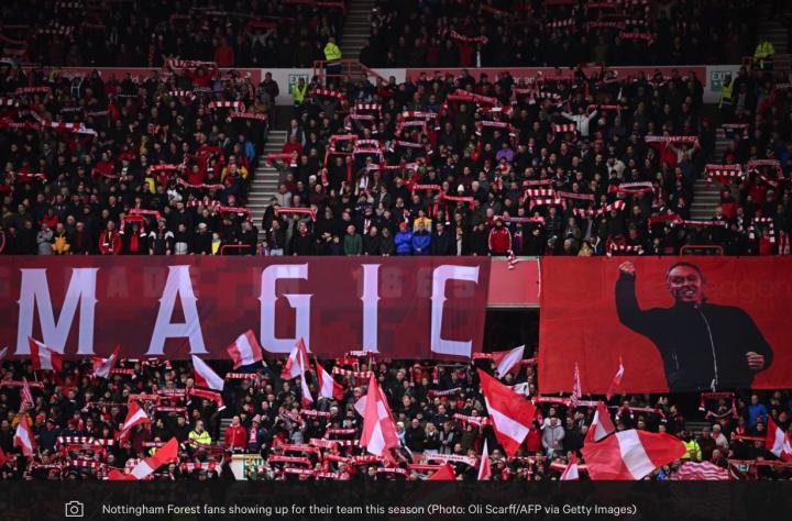 【诺丁汉森林球迷本赛季为他们的球队现身(照片:Oli Scarff/AFP via Getty Images)】