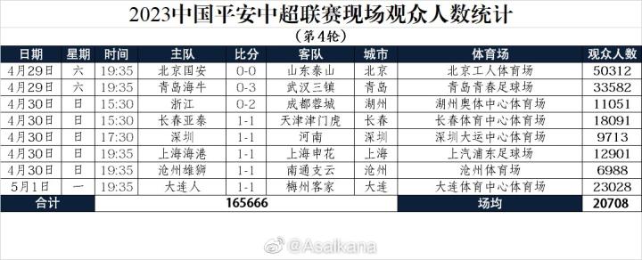 中超第4轮观众人数:京鲁大战50312人最多,场均20708人ETChalmers @懂球帝2023-05-01 21:35中超联赛第4轮8场比赛全部战罢,本轮现场观众人数统计出炉,京鲁大战50312人最多,场均20708人,一共165666人次。中超第4轮现场观众人数统计北京国安vs山东泰山 50312人青岛海牛vs武汉三镇 33582人浙江vs成都蓉城 11051人长春亚泰vs天津津门虎 18091人深圳vs河南 9713人上海海港vs上海申花 12901人沧州雄狮vs南通支云 6988人大连人vs梅州客家 23028人数据来源:@Asaikana 展开更多