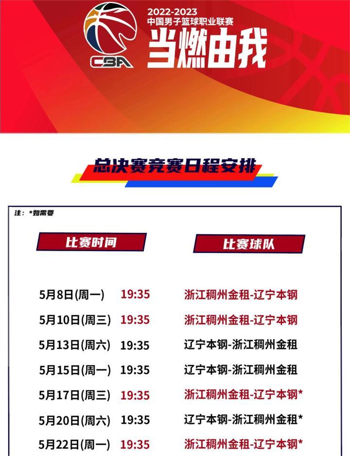 5月5日晚,在辽宁本钢顶住压力淘汰浙江东阳光之后,CBA官方公布了2022-2023赛季CBA总决赛竞赛日程。