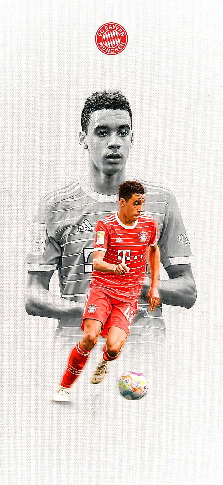 球星壁纸第50期|小鹿斑比 贾马尔-穆西亚拉 贾马尔·穆西亚拉(Jamal Musiala),2003年2月26日出生于德国斯图加特,德国/英国双国籍足球运动员,场上司职中场,现效力于德国足球甲级联赛的拜仁慕尼黑足球俱乐部。 穆西亚拉出道于南安普敦足球俱乐部青训,在2019年加盟拜仁慕尼黑足球俱乐部U17青年队,同年升入拜仁慕尼黑U19青年队。2020年夏天,穆西亚拉正式升入拜仁慕尼黑一线队。 2021年3月,穆西亚拉完成德国国家男子足球队首秀;6月,穆西亚拉随德国国家队征战欧洲杯。2022年11月,穆西亚拉随德国国家队征战2022年卡塔尔世界杯。