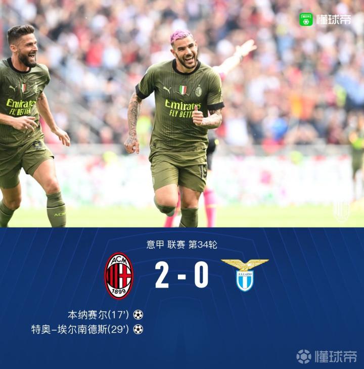 【米兰2-0蓝鹰,特奥奔袭全场+世界波,本纳赛尔破门,莱奥伤退】