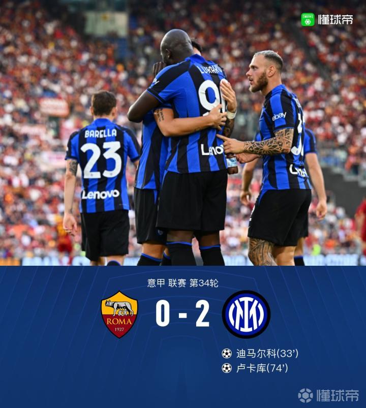 【国米客场2-0罗马迎联赛4连胜升至第三,卢卡库、迪马尔科建功】