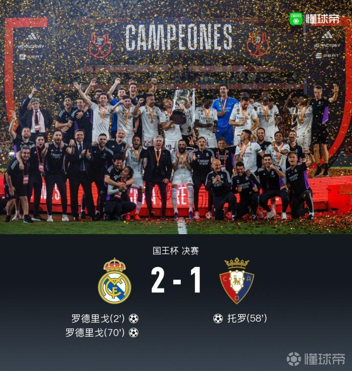 皇马上次赢得国王杯冠军还是在遥远的2014年,在那之后他们各种奖杯举到手酸,甚至还拿了五次欧冠,但却连国王杯决赛的草皮都没摸过,不过这一切在今天终于彻底翻篇了!