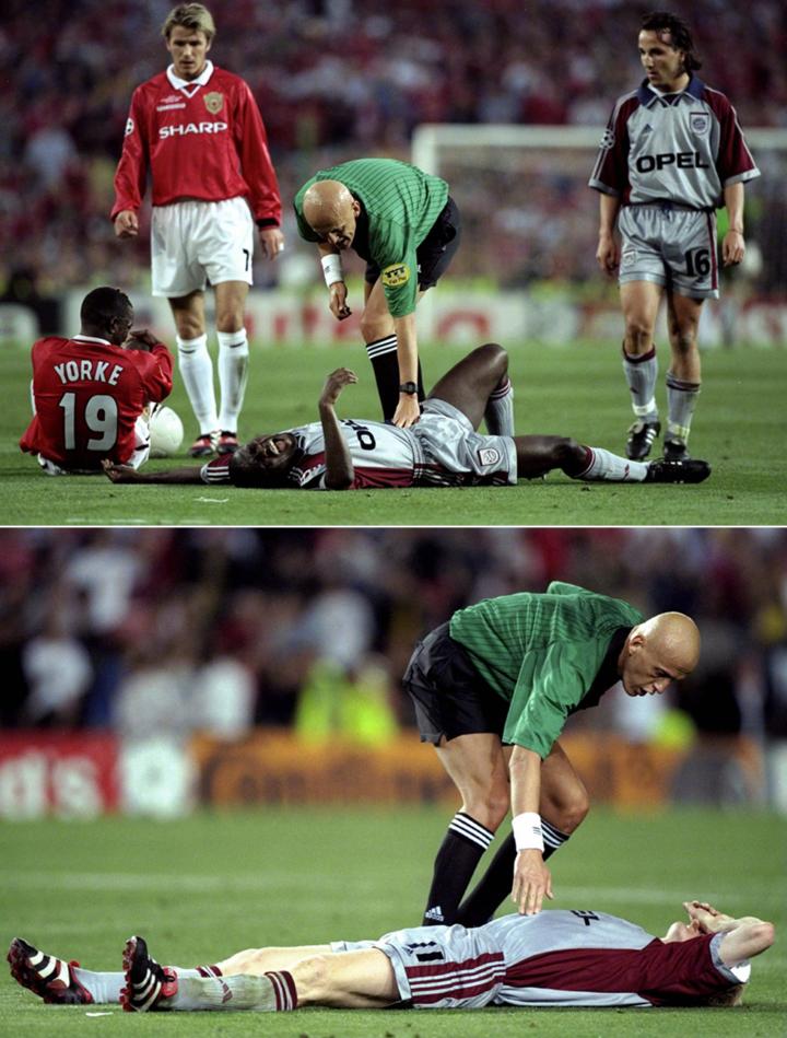 伤停补时只有短短三分钟,欧足联主席已经从主席台站起来,准备走下看台为拜仁慕尼黑颁奖,据说在走到曼联名宿博比·查尔顿面前时,还对他说了一句“抱歉”以示安慰。而德国的电视评论员则开始引用退役的英格兰前锋莱因克尔的名言:“足球是什么?足球其实很简单,22个人追着1个球跑90分钟,最后由德国人获胜的运动!”