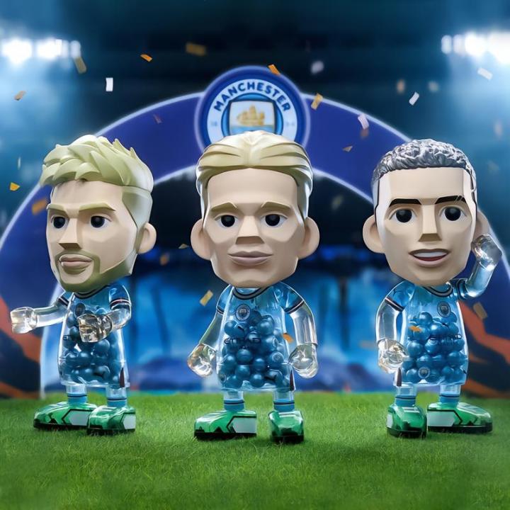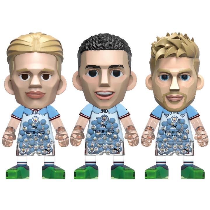 王牌化身曼城官方正版Moneyball手办:德布劳内 哈兰德 福登(从左到右)
